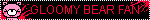 A black blinkie that says "GLOOMY BEAR FAN" with a picture of Gloomy bear to the left. There is a flashing blood splatter on each side.