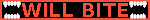 A black blinkie that says "WILL BITE" with gnashing teeth on each side.