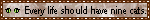 A brown blinkie that says "Every life should have nine cats" with a green pair of cat eyes to the left.