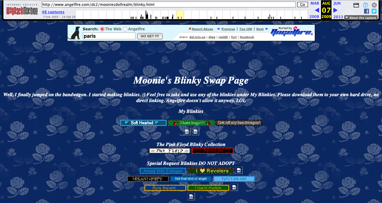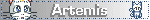 A light gray blinkie that says "Artemis" with pixel art of Artemis from the anime "Sailor Moon" on each side.
