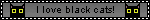 A gray blinkie that says "I love black cats!" There is a black cat with yellow eyes on each side.