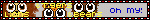 A gray blinkie that says "Lions Tigers Bears Oh my!". This is a quote from "The Wizard of Oz". To the left is a lion, a tiger, and a bear in that order.