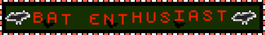 A dark green blinkie that says "BAT ENTHUSIAST". There's a black bat on each side, and black bats flying in the background.