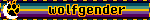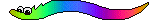A transparent blinkie of a "worm on a string" toy with rainbow flowing fur.