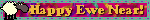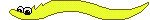 A transparent blinkie of a "worm on a string" toy with yellow fur.
