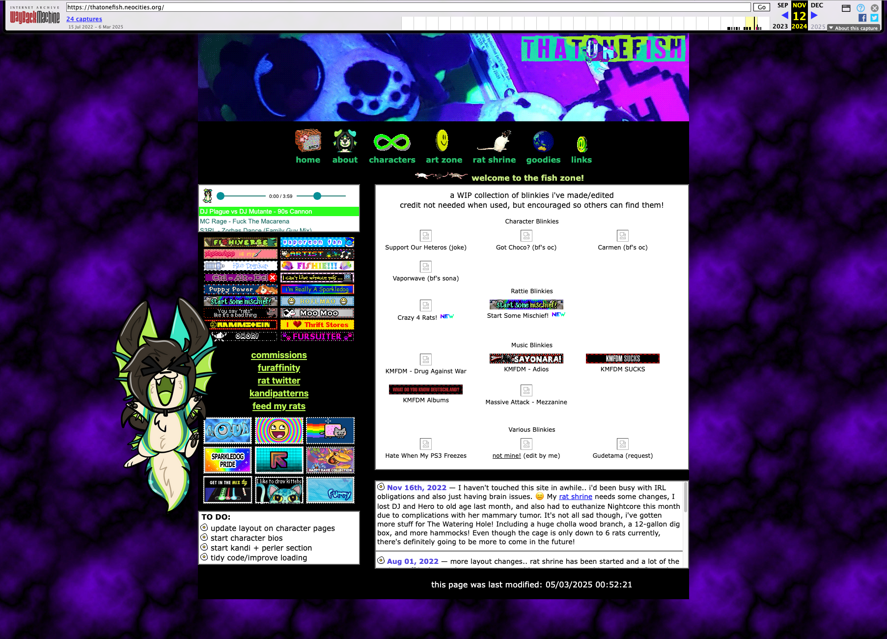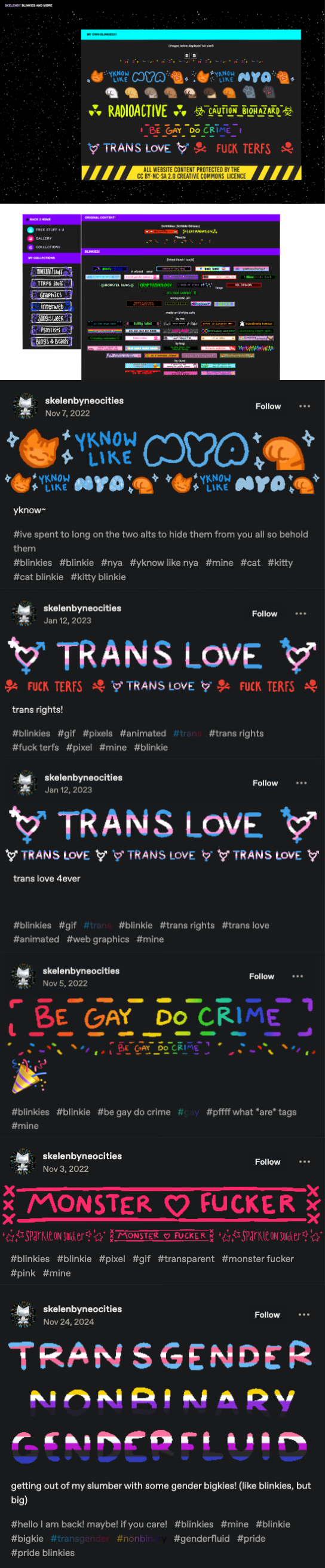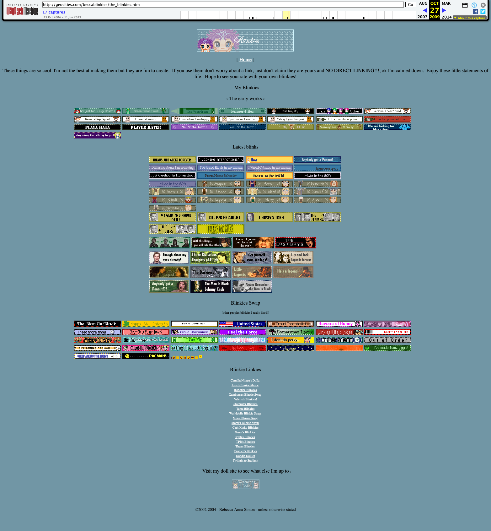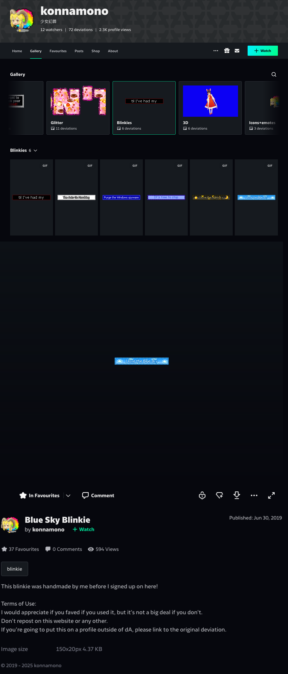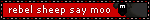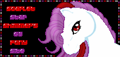 A red blinkie that says "RAG KITTY". This is about the stuffed animal version of Emily Strange's pet cat, Sabbath. Emily the Strange is a comic book series.