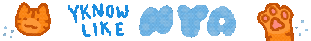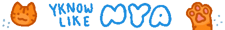 A transparent blinkie that says "YKNOW LIKE NYA". It has an animated orange cat to the left, and an orange cat paw to the right.
