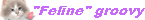 A transparent blinkie that says "Feline groovy" with a picture of a cat and pink flower to the left. "Feline" is in quotes because it's a pun on the word "feeling".