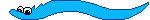 A transparent blinkie of a "worm on a string" toy with blue fur.