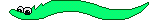 A transparent blinkie of a "worm on a string" toy with green fur.