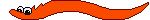 A transparent blinkie of a "worm on a string" toy with orange fur.