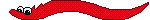 A transparent blinkie of a "worm on a string" toy with red fur.