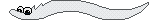 A transparent blinkie of a "worm on a string" toy with black and white mixed fur.
