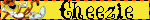 A cyan blinkie that says "Meow!" with a picture of Gary the Snail from the cartoon "Spongebob Squarepants" to the left.