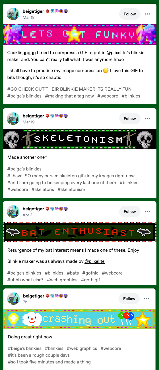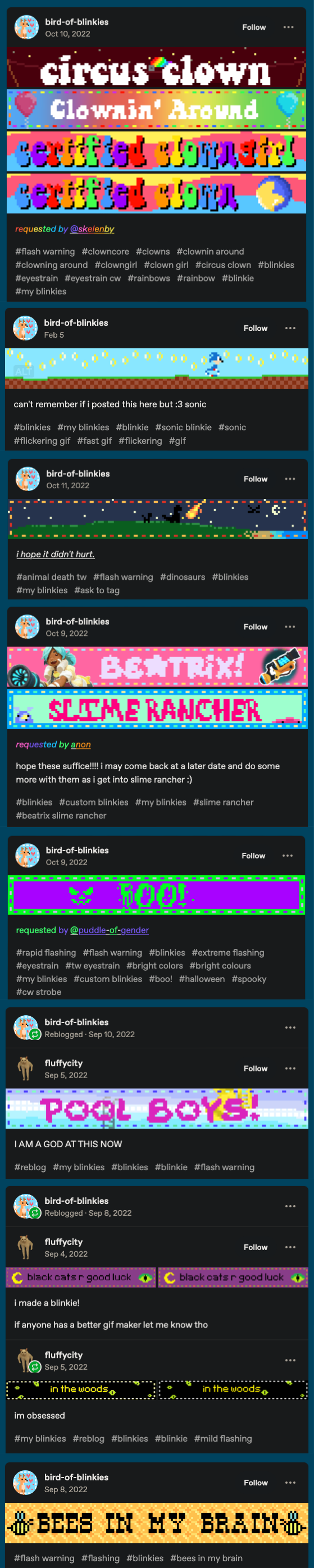 A red-orange blinkie that says "ANIMAL IN HEAT" with a hazard symbol on each side.