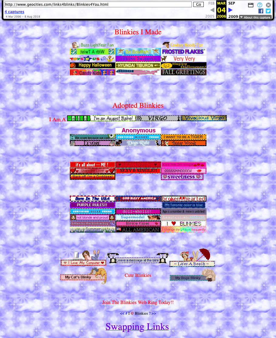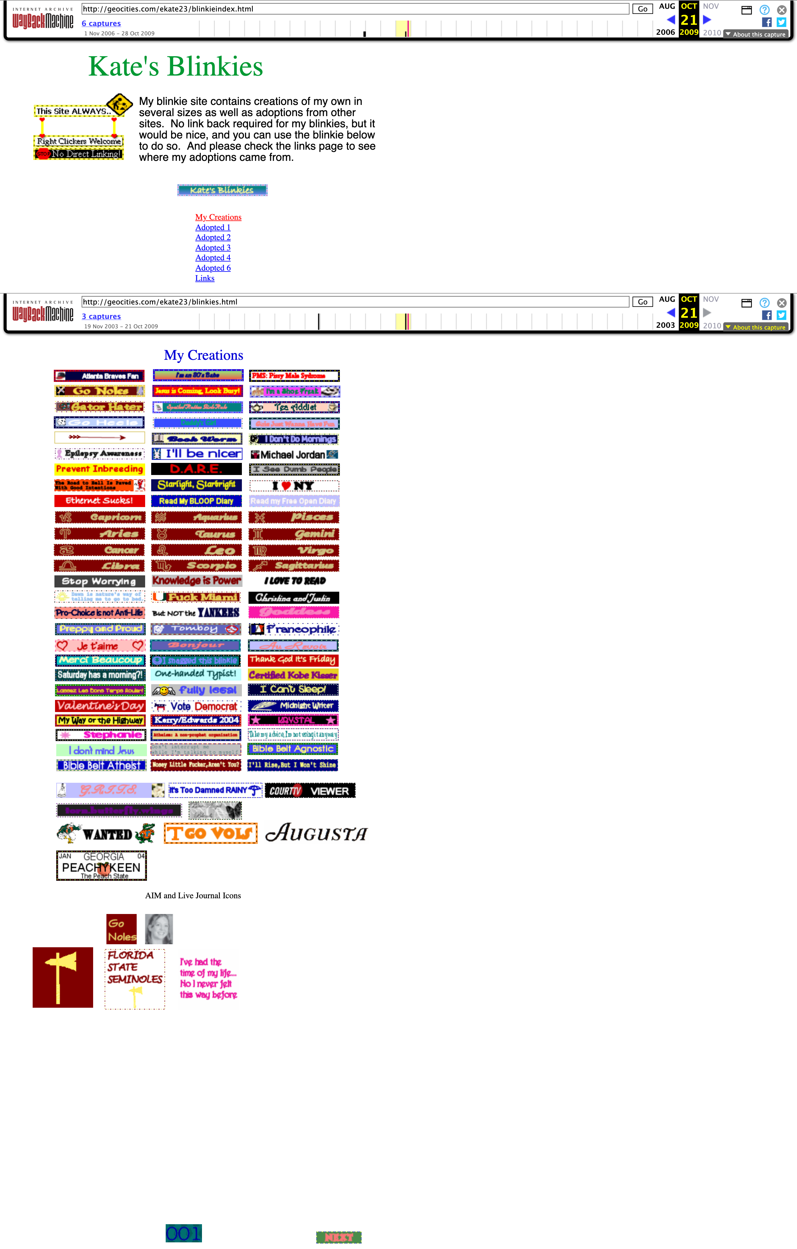 A red blinkie that says "Who's Your Kitty?" with a cartoon white cat to the left.