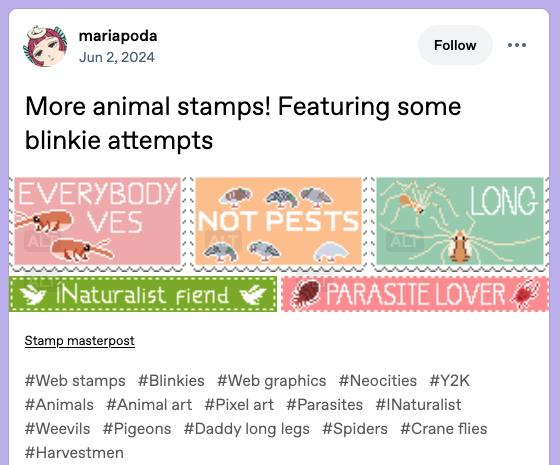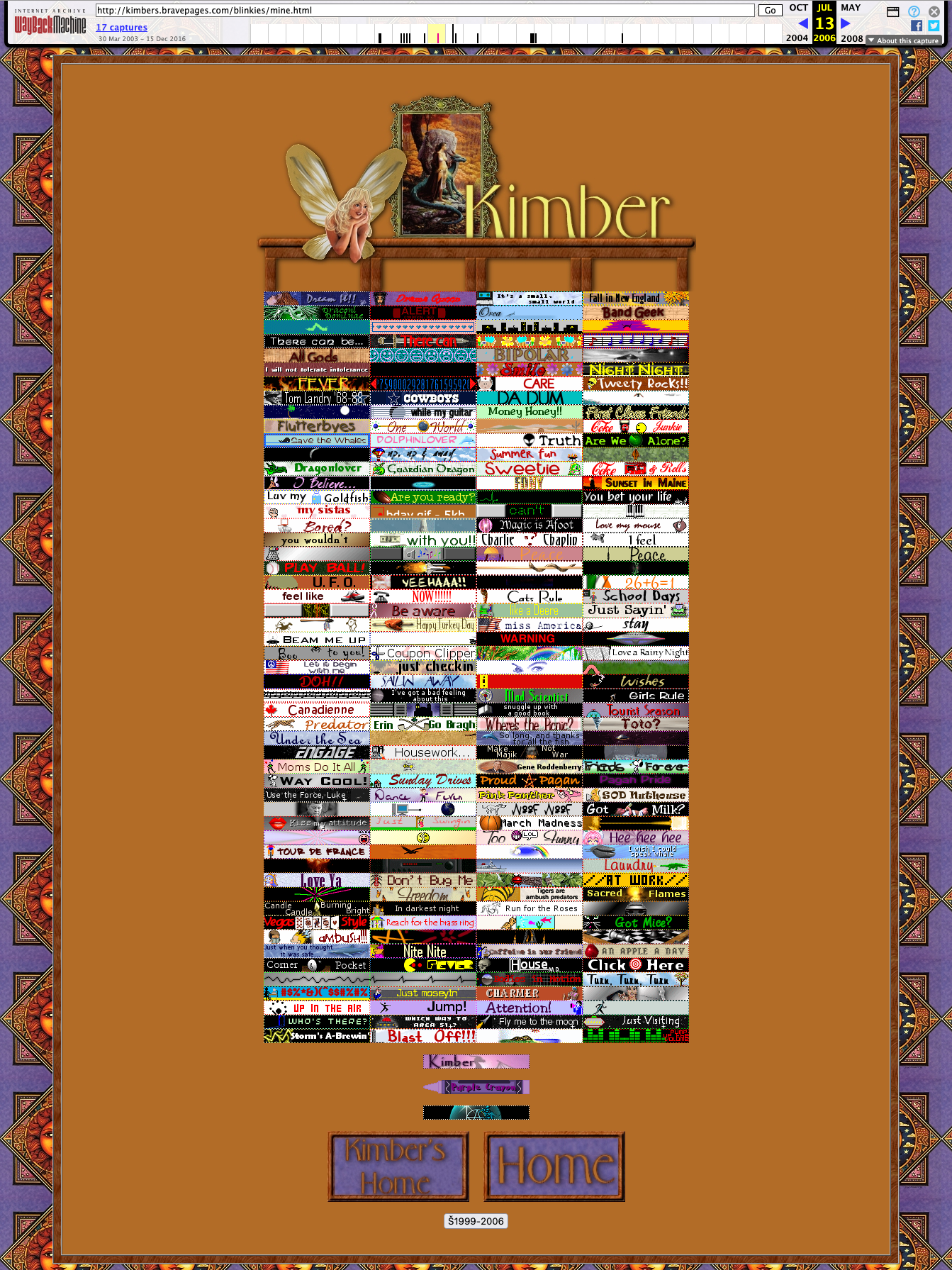 A brown blinkie that says "ANIMALS". To the left is a drawing of a snail, and to the right is a drawing of a dog.