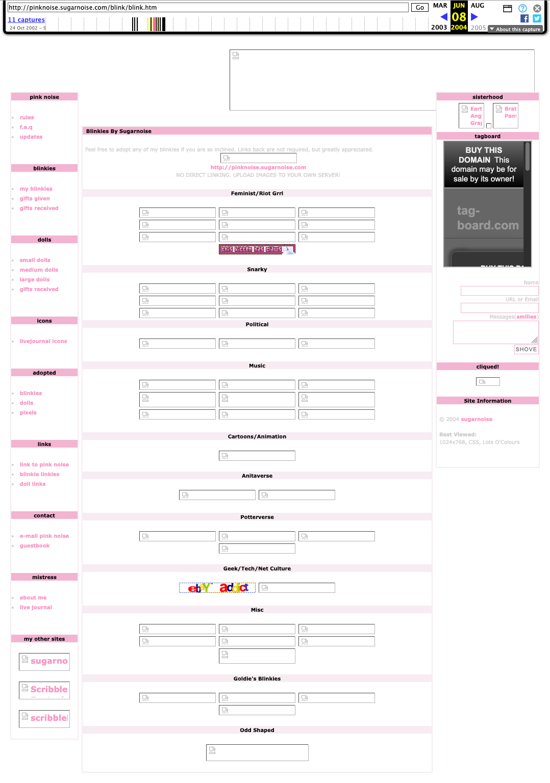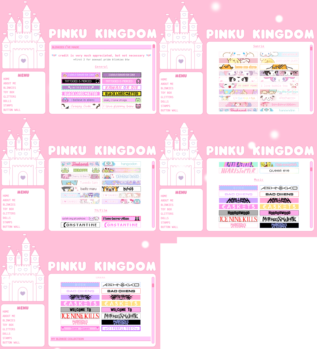 A pink blinkie that says "THE NAUGHTY GRIZZLY". To the left is a picture of Gloomy Bear, a cartoon bear from the anime of the same name.