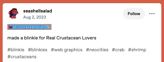 A pink blinkie that says "KRILL YOURSELF" with a krill on each side. This is a pun on the phrase "kill yourself".