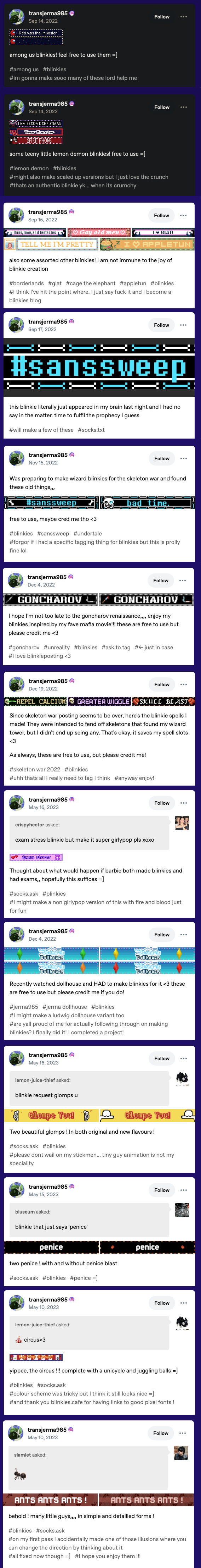 A transparent blinkie of a "worm on a string" toy with dark blue fur.