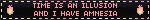 Text: "TIME IS AN ILLUSION AND I HAVE AMNESIA"