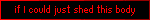 A black blinkie that says "if I could just shed this body".