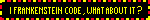 Text: "I FRANKENSTEIN CODE, WHAT ABOUT IT?"