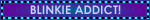 A blue and purple blinkie that says "BLINKIE ADDICT!".