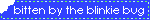A dark blue blinkie that says "bitten by the blinkie bug". There is a bite taken out of the top left corner.