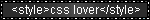 A dark gray blinkie that says "<style>css lover</style>". This is about Cascading Style Sheets, which is a style sheet language used to stylize a document written in HTML or XML. The blinkie's text is written that way to resemble the way you would add CSS to a document.