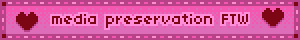A pink blinkie that says "media preservation FTW" with a red heart on each side. "FTW" stands for "for the win".