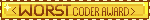 A yellow blinkie that says "<WORST CODER AWARD>".