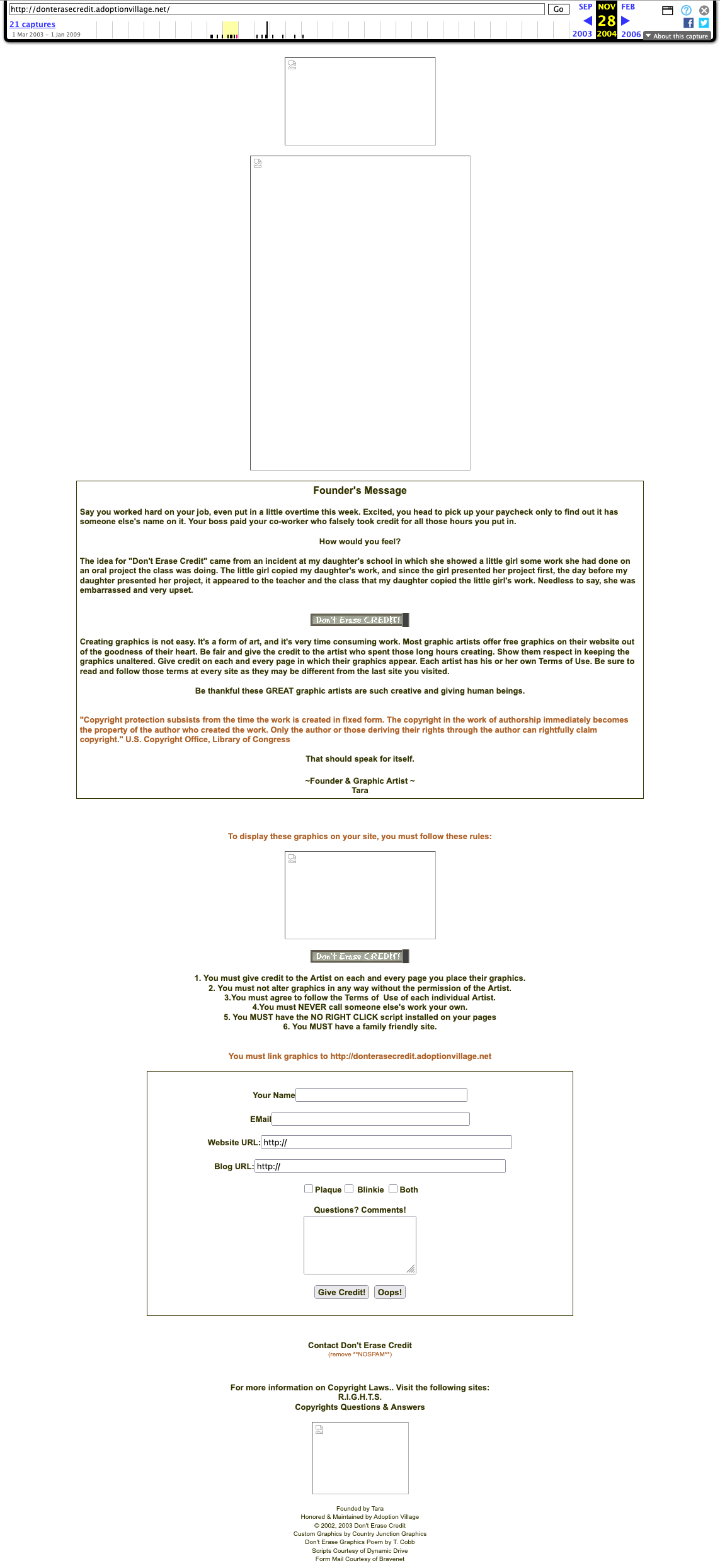 A gray blinkie made to resemble a chalkboard that says "Don't Erase CREDIT!" in a chalk font. A chalkboard eraser swipes across the blinkie from right to left, erasing the text.