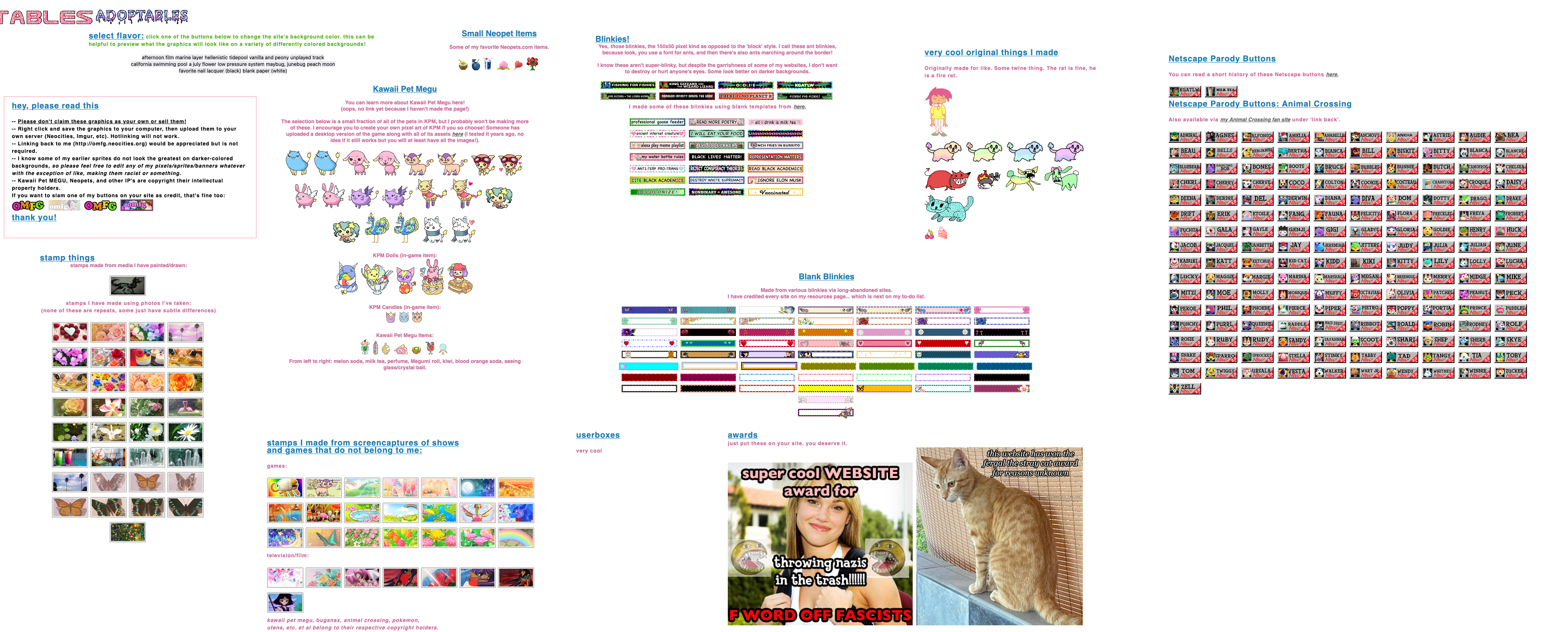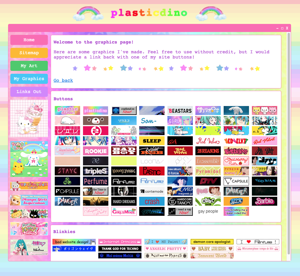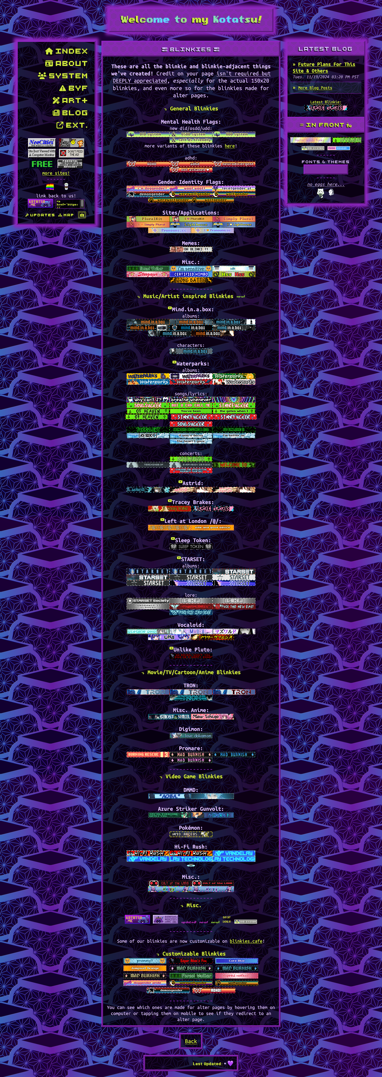 On the left, blinkies are sorted by topic, and on the right blinkies are sorted by aesthetic. Also on the right, there are categories for unusual blinkie types!